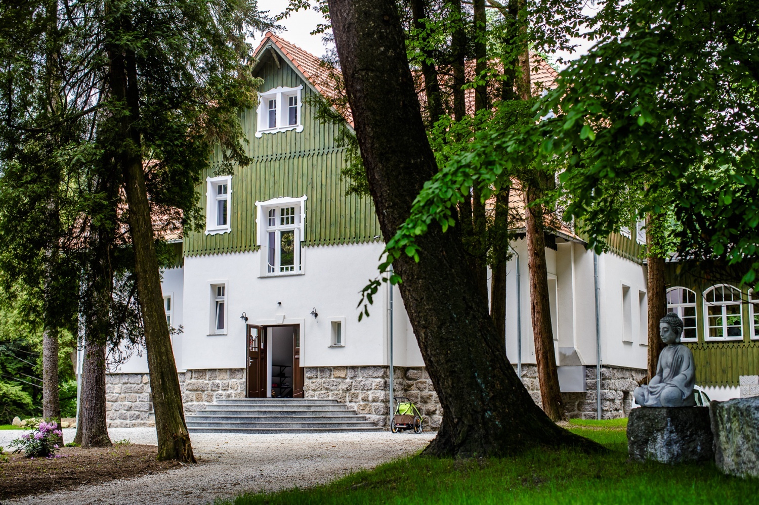 Budynek Villi Sattva to przedwojenna szkoła podstawowa.